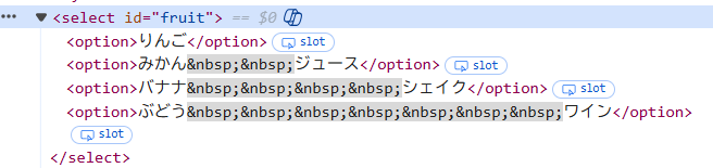 以下のような、optionタグの中で半角空白で間隔をあける場合があるとします。